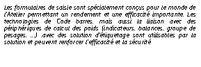 - Réception vif (intégration ticket de pesée) et forain, Cession Atelier, Transformation, Fabrication, Préparation et Expédition
